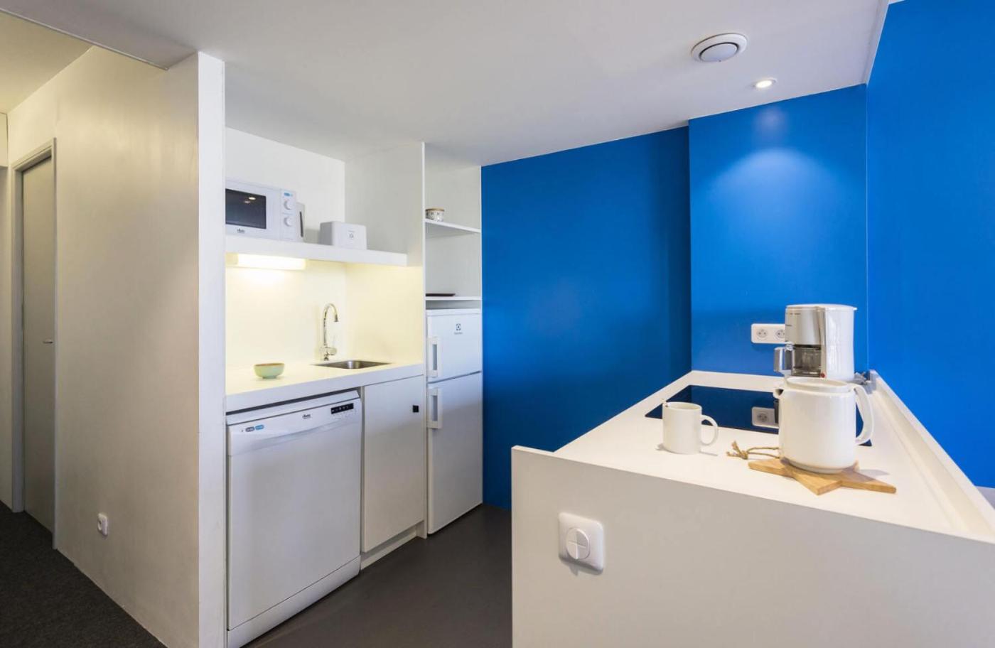 Cet appartement comprend une télévision. La cuisine est pourvue d’un réfrigérateur, d’un lave-vaisselle et d’un four.