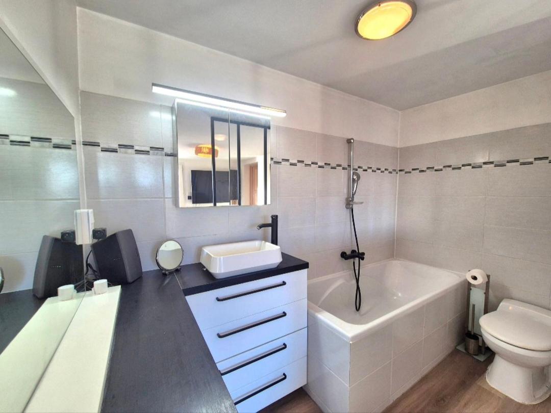 Maison 1 Chambre. Guests will have a special experience as this holiday home features a hot tub and a fireplace. This air-conditioned holiday home is comprised of 1 living room, 1 separate bedroom and 2 bathrooms with a bath. In the well-equipped kitchen, guests will find a stovetop, a refrigerator, a dishwasher and an oven. Featuring a terrace with sea views, this holiday home also offers a washing machine and a flat-screen TV. The unit offers 1 bed.