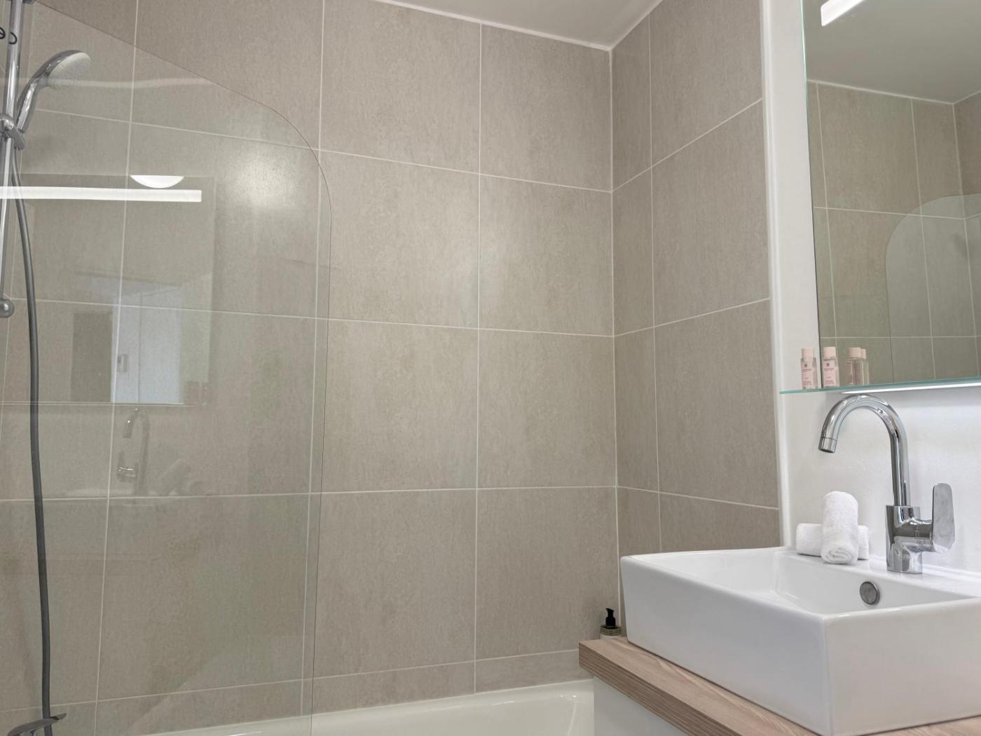 Appartement 1 Chambre. Boasting a private entrance, this air-conditioned apartment comes with 1 living room, 1 separate bedroom and 1 bathroom with a bath and a shower. In the kitchenette, guests will find a stovetop, a refrigerator, a microwave and a tea and coffee maker. This apartment has a washing machine, soundproof walls, a flat-screen TV with cable channels and a balcony. The unit has 2 beds.