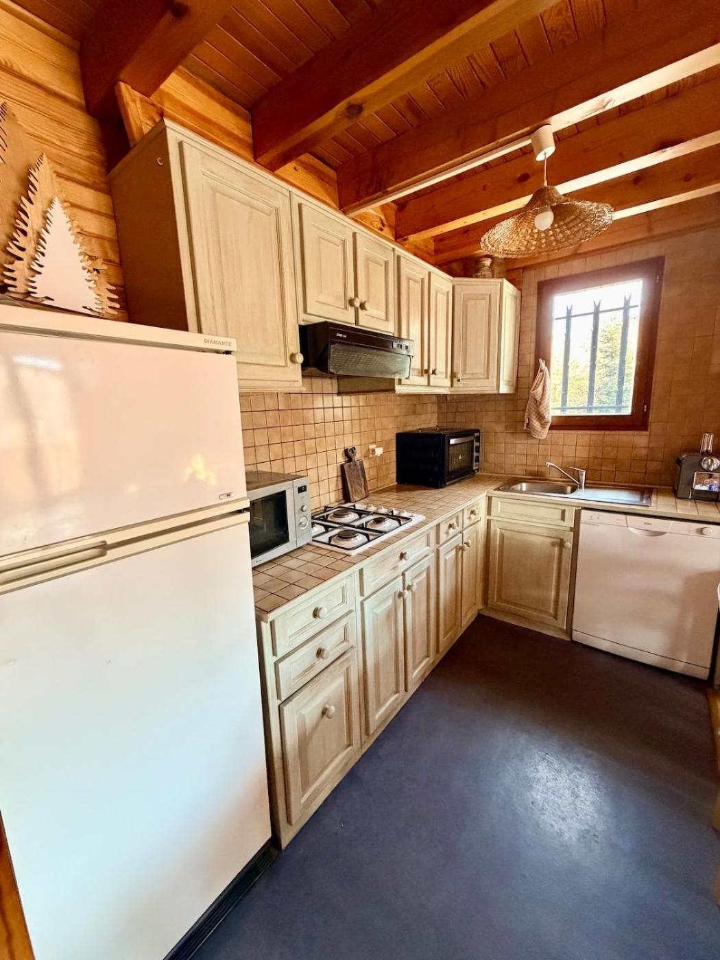 Chalet 3 Chambres. This chalet features a fireplace. This spacious chalet includes 3 bedrooms, kitchen, a terrace and 2 bathrooms with a shower. The chalets kitchen, which has kitchenware, is available for cooking and storing food. The chalet offers a washing machine, a private entrance, a wardrobe, a sofa and a flat-screen TV. The unit has 4 beds.
