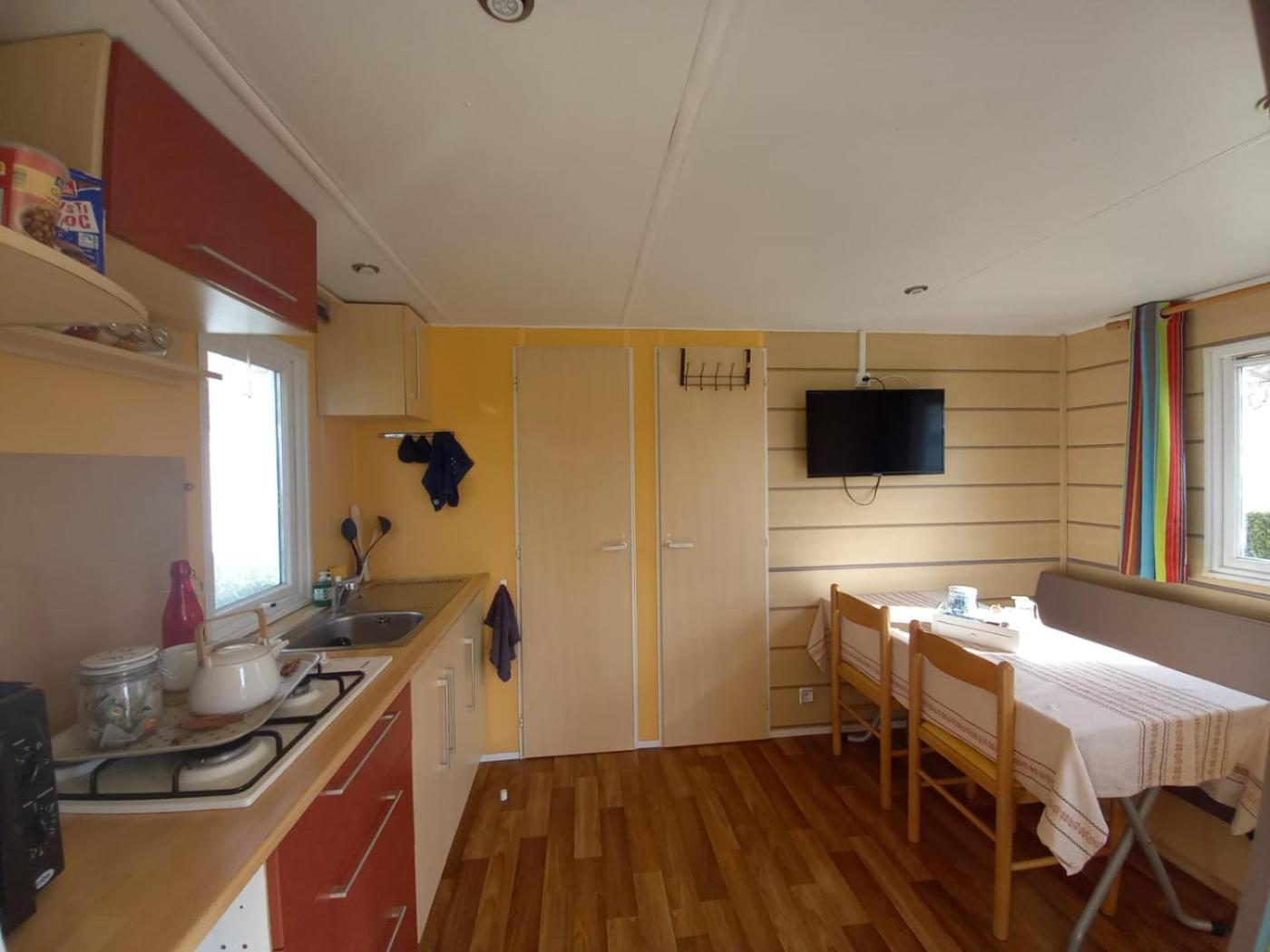 Mobile Home. Boasting a private entrance, this mobile home comes with 1 living room, 1 separate bedroom and 1 bathroom with a shower and a bidet. Featuring a terrace with lake views, this mobile home also features a washing machine and a flat-screen TV. The unit has 2 beds.