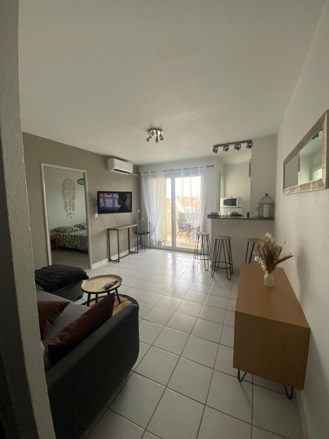 L’hébergement Le calme à proximité de la mer se situe à Canet, à seulement 1 km de ce lieu d’intérêt : Plage du Roussillon. Il offre une vue sur la ville et possède une connexion Wi-Fi gratuite ainsi qu’un parking privé gratuit. Cet appartement met à votre disposition un balcon.
