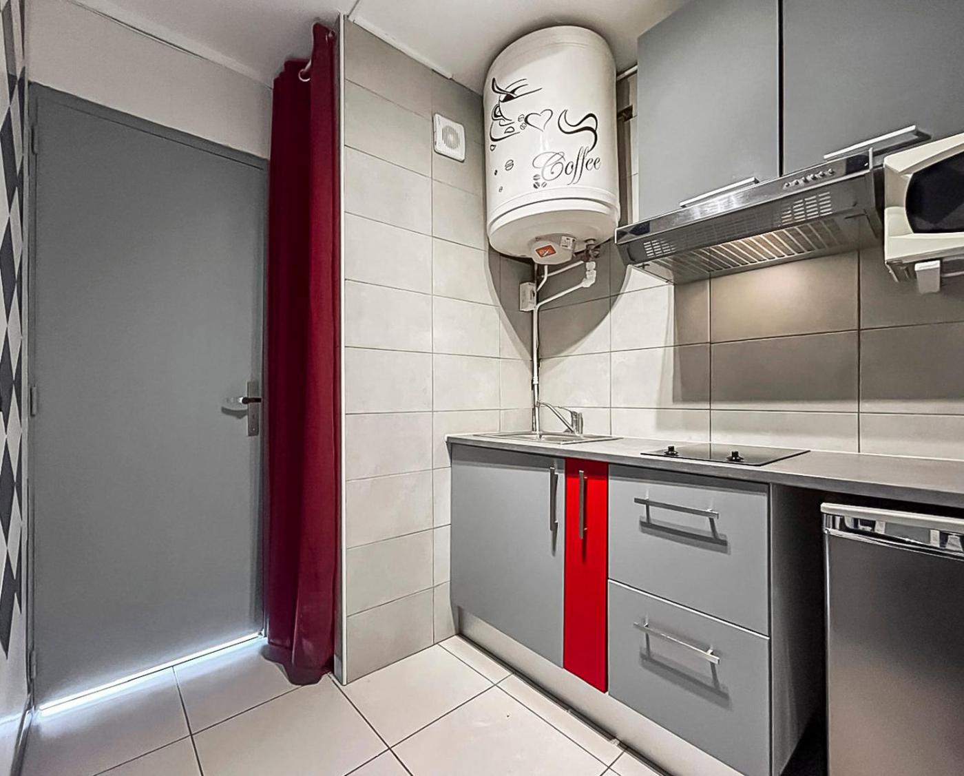 Studio avec Balcon. The studio provides a private entrance, a tea and coffee maker, as well as a private bathroom featuring a shower and a hairdryer. In the fully equipped kitchen, guests will find a stovetop, a refrigerator, kitchenware and a microwave. This air-conditioned studio consists of a dining area, a flat-screen TV with cable channels a washing machine and a balcony. The unit offers 1 bed.
