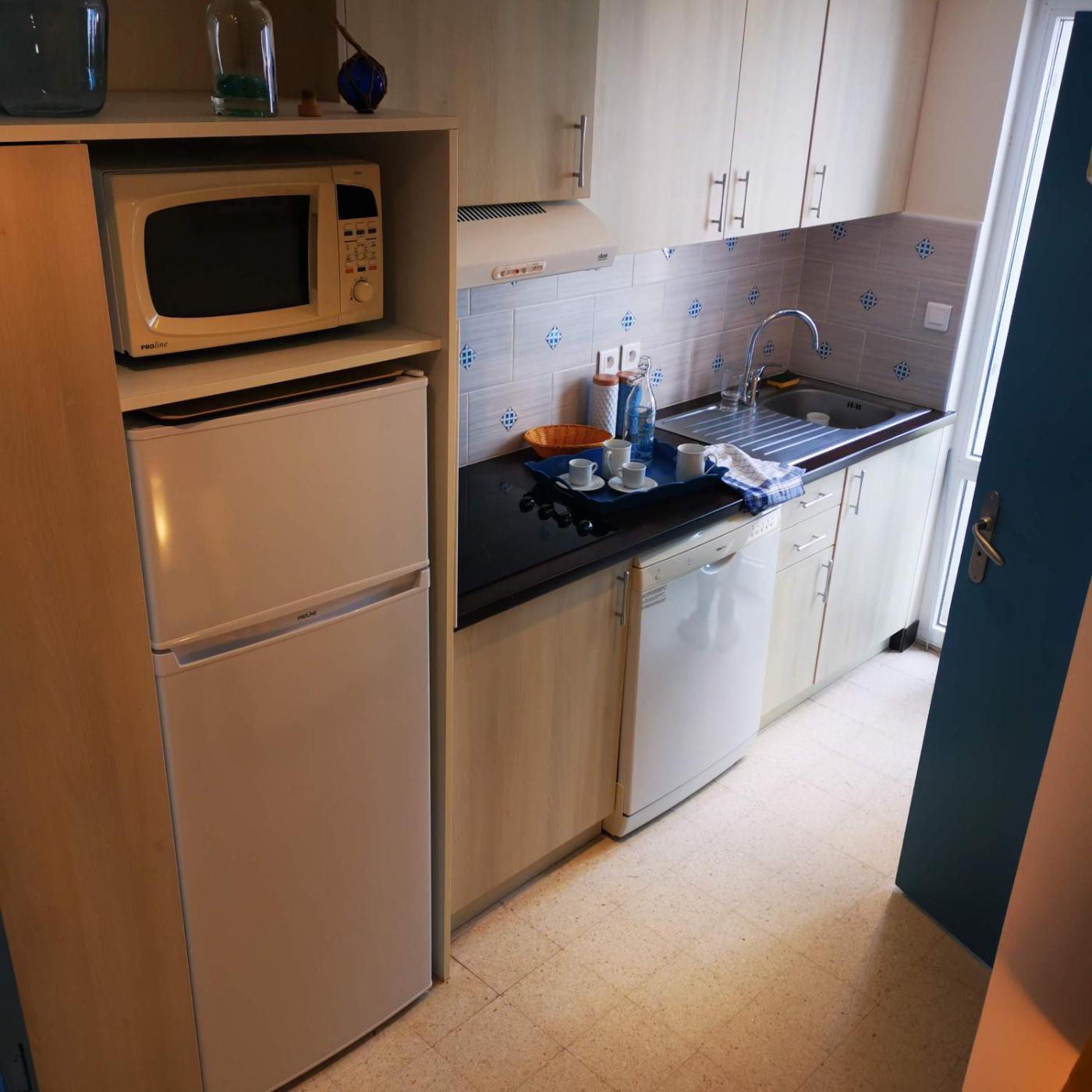 Appartement 1 Chambre. The pool with a view is a top feature of this apartment. Boasting a private entrance, this apartment comes with 1 living room, 1 separate bedroom and 1 bathroom with a shower and a hairdryer. In the well-fitted kitchen, guests will find a stovetop, a refrigerator, a dishwasher and kitchenware. Featuring a terrace with sea views, this apartment also features a washing machine and a flat-screen TV. The unit has 3 beds.