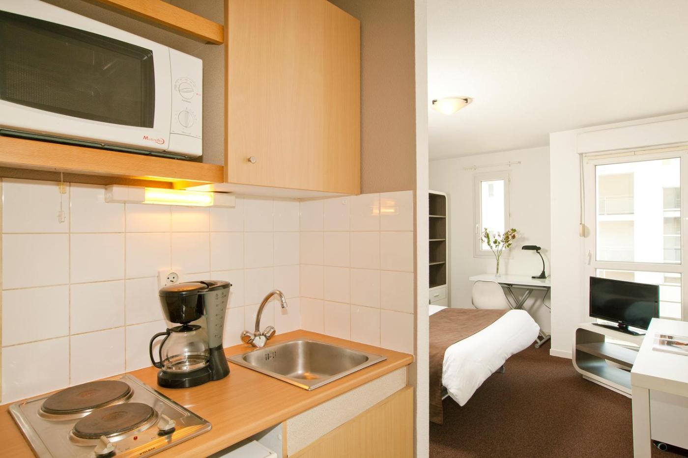 Revêtu de moquette et de parquet, chaque appartement du Séjours & Affaires La Rochelle Les Minimes est insonorisé et entièrement meublé. Ils disposent dune kitchenette entièrement équipée et dune salle de bains privative.