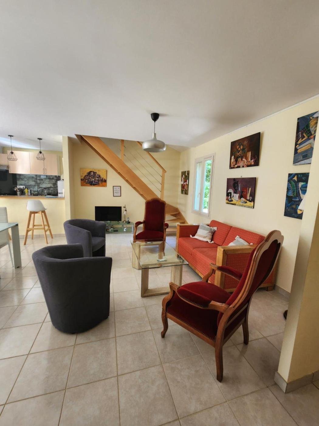 Villa 3 Chambres. This spacious holiday home consists of 1 living room, 3 separate bedrooms and 2 bathrooms with a walk-in shower and free toiletries. Guests will find a stovetop, a refrigerator, a dishwasher and kitchenware in the well-equipped kitchen. The holiday home also offers a barbecue. The air-conditioned holiday home provides a flat-screen TV with streaming services, a washing machine, a private entrance, a tea and coffee maker as well as garden views. The unit offers 4 beds.