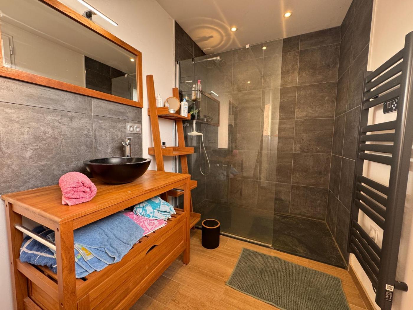 Chambre Double Deluxe. The spacious double room has a shared bathroom, a washing machine, soundproof walls, as well as a seating area with a flat-screen TV. The fully equipped kitchen features a stovetop, a refrigerator, a dishwasher and kitchenware. Boasting a terrace, this double room also features a tea and coffee maker, a dining area and a TV. The unit has 2 beds.