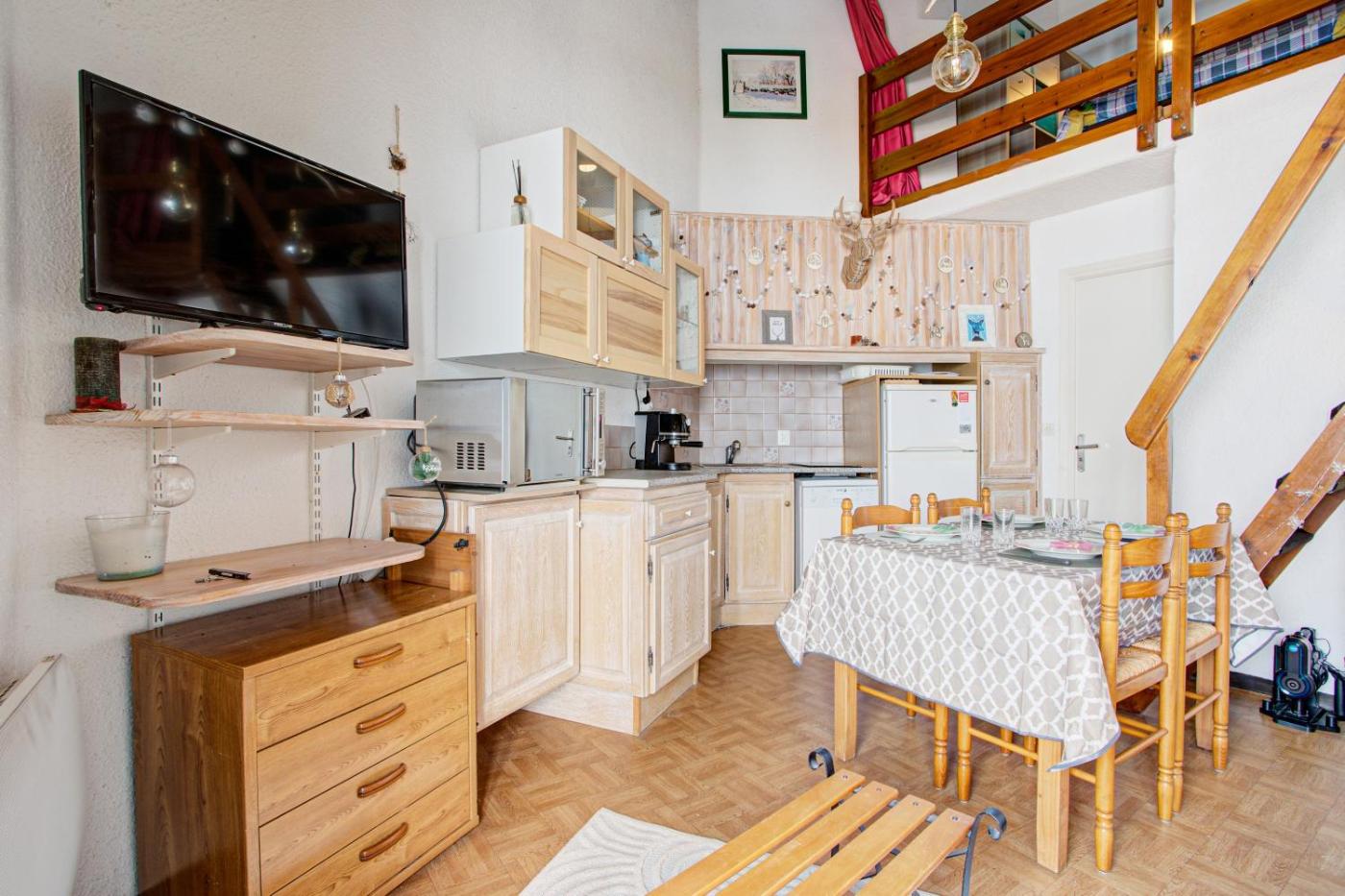 Studio - Vue sur Montagne. Guests can make meals in the kitchen that comes with a refrigerator, a dishwasher, kitchenware and an oven. The studio offers a tea and coffee maker, a wardrobe, a balcony with mountain views as well as a private bathroom featuring a shower. The unit offers 4 beds.