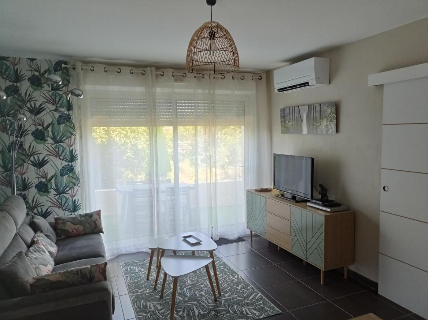 Appartement 1 Chambre. Boasting a private entrance, this air-conditioned apartment features 1 living room, 1 separate bedroom and 1 bathroom with a shower and a hairdryer. In the fully equipped kitchen, guests will find a stovetop, a refrigerator, a dishwasher and kitchenware. Featuring a terrace with garden views, this apartment also features a washing machine and a flat-screen TV with cable channels. The unit has 2 beds.
