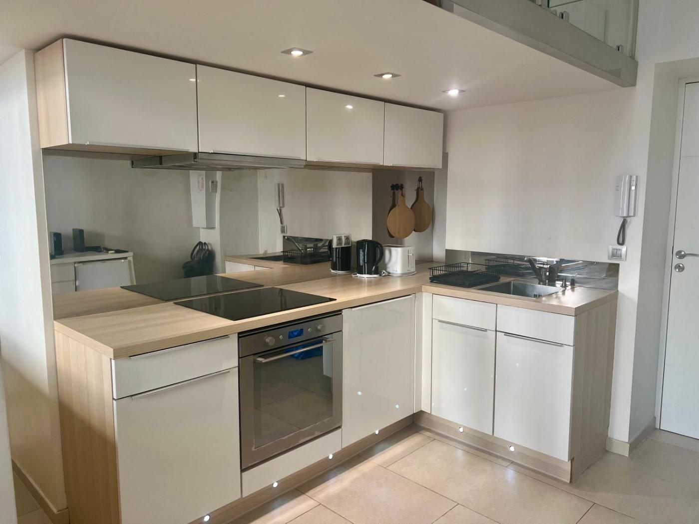 Appartement 1 Chambre. In the kitchen, guests will find a stovetop, a refrigerator, kitchenware and an oven. The air-conditioned apartment offers a flat-screen TV with streaming services, a washing machine, a private entrance, soundproof walls as well as city views. The unit has 2 beds.