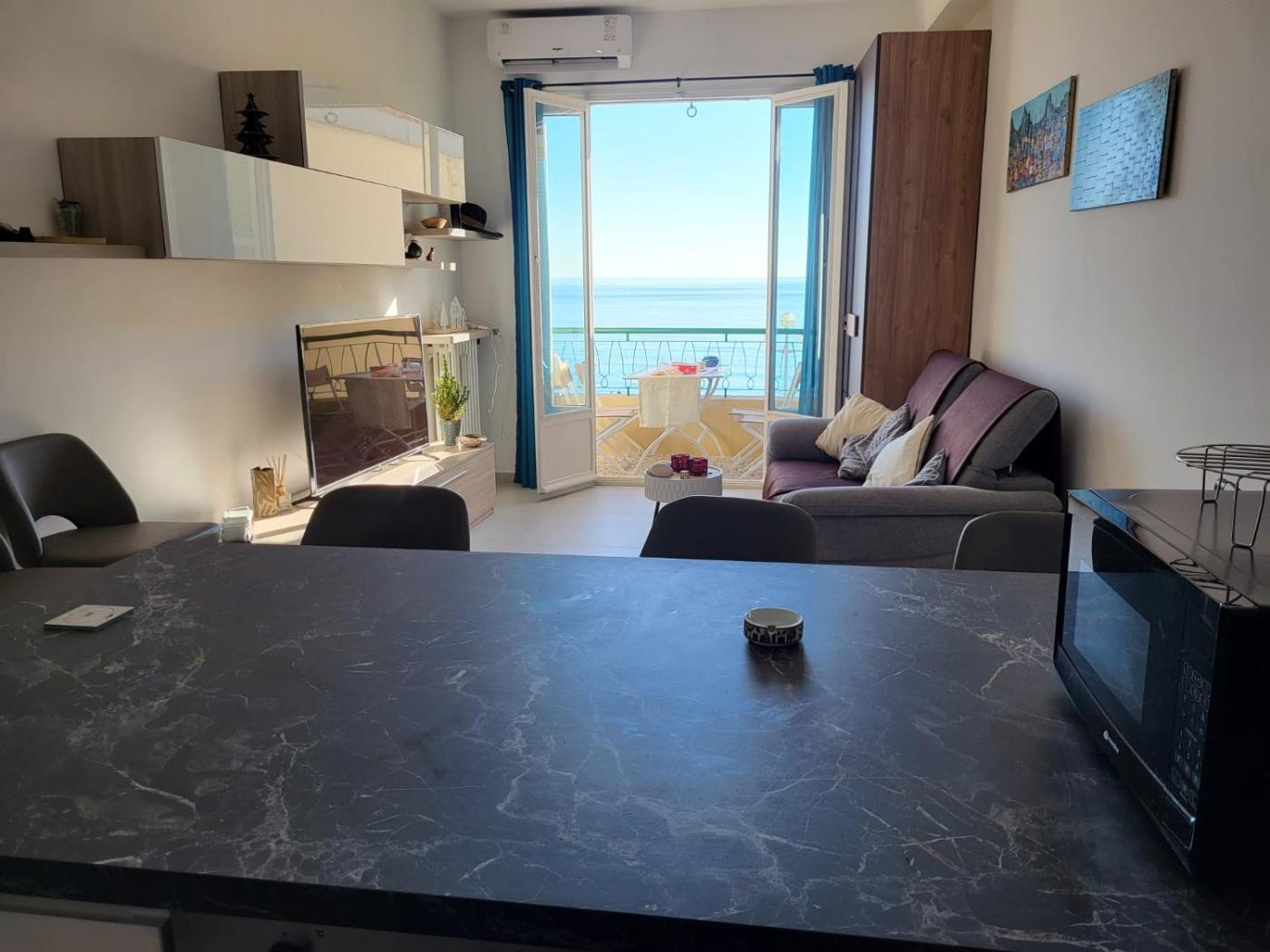 Cet appartement comporte 2 chambres, 1 salle de bains, du linge de lit, des serviettes, une télévision, une cuisine entièrement équipée et un balcon offrant une vue sur la mer.