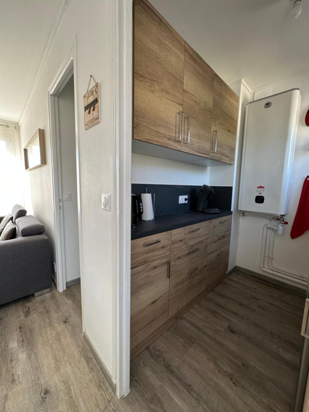 Appartement 1 Chambre. The apartment features 1 bedroom and 1 bathroom with a shower and free toiletries. Guests can make meals in the kitchen that is equipped with a stovetop, a refrigerator, kitchenware and a microwave. Featuring a balcony with garden views, this apartment also provides a tea and coffee maker and a flat-screen TV. The unit offers 1 bed.