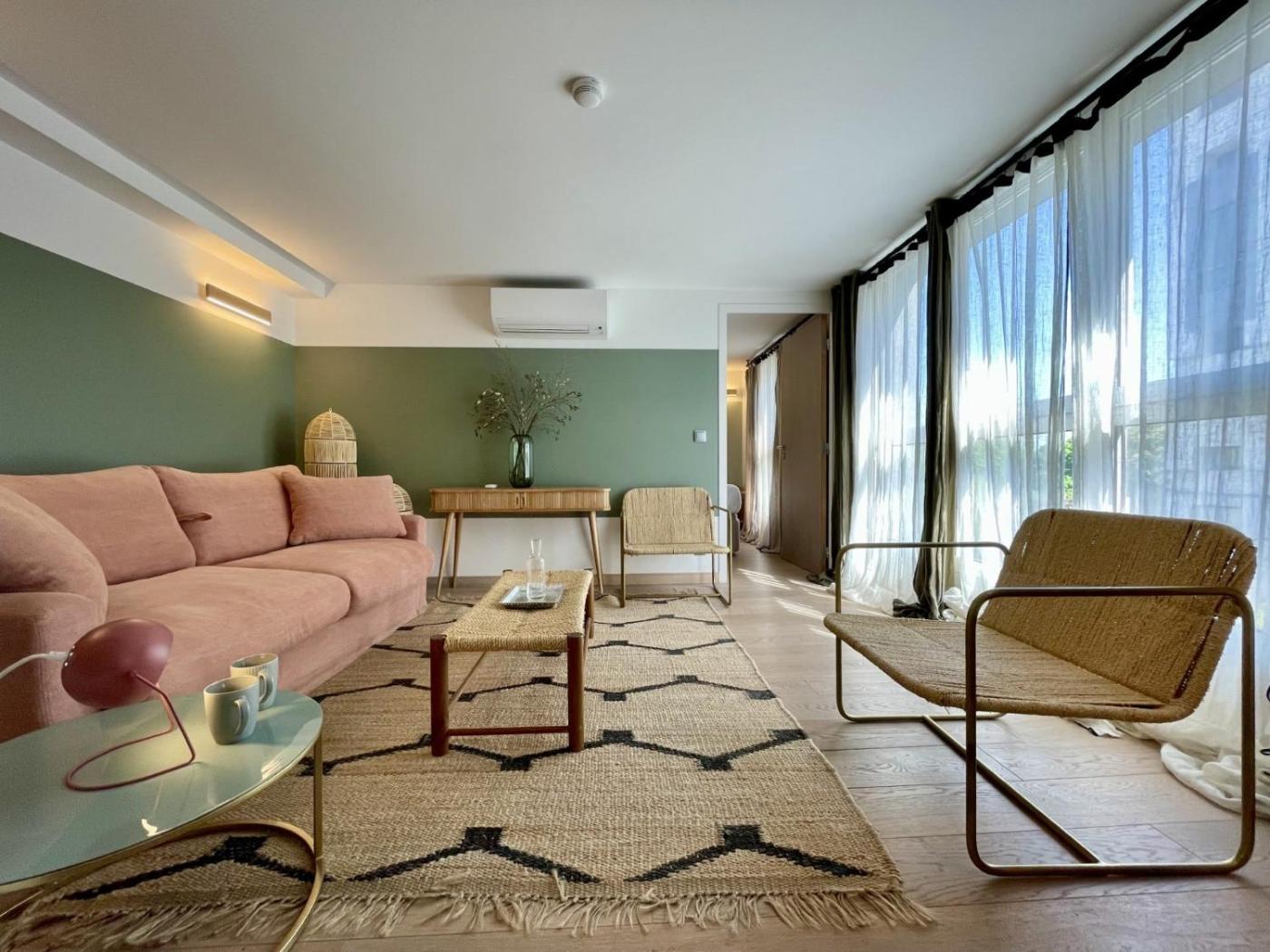 Appartement 1 Chambre - n° 4. Cet appartement climatisé comprend un salon, 1 chambre séparée ainsi qu’une salle de bains avec douche. Vous pourrez préparer vos repas dans la cuisine équipée d’un réfrigérateur, d’un lave-vaisselle, d’un four et d’ustensiles. Cet appartement dispose dun lave-linge, dun plateaubouilloire, dun coin salon, du chauffage et dune télévision par câble. Ce logement comporte 3 lits. ;