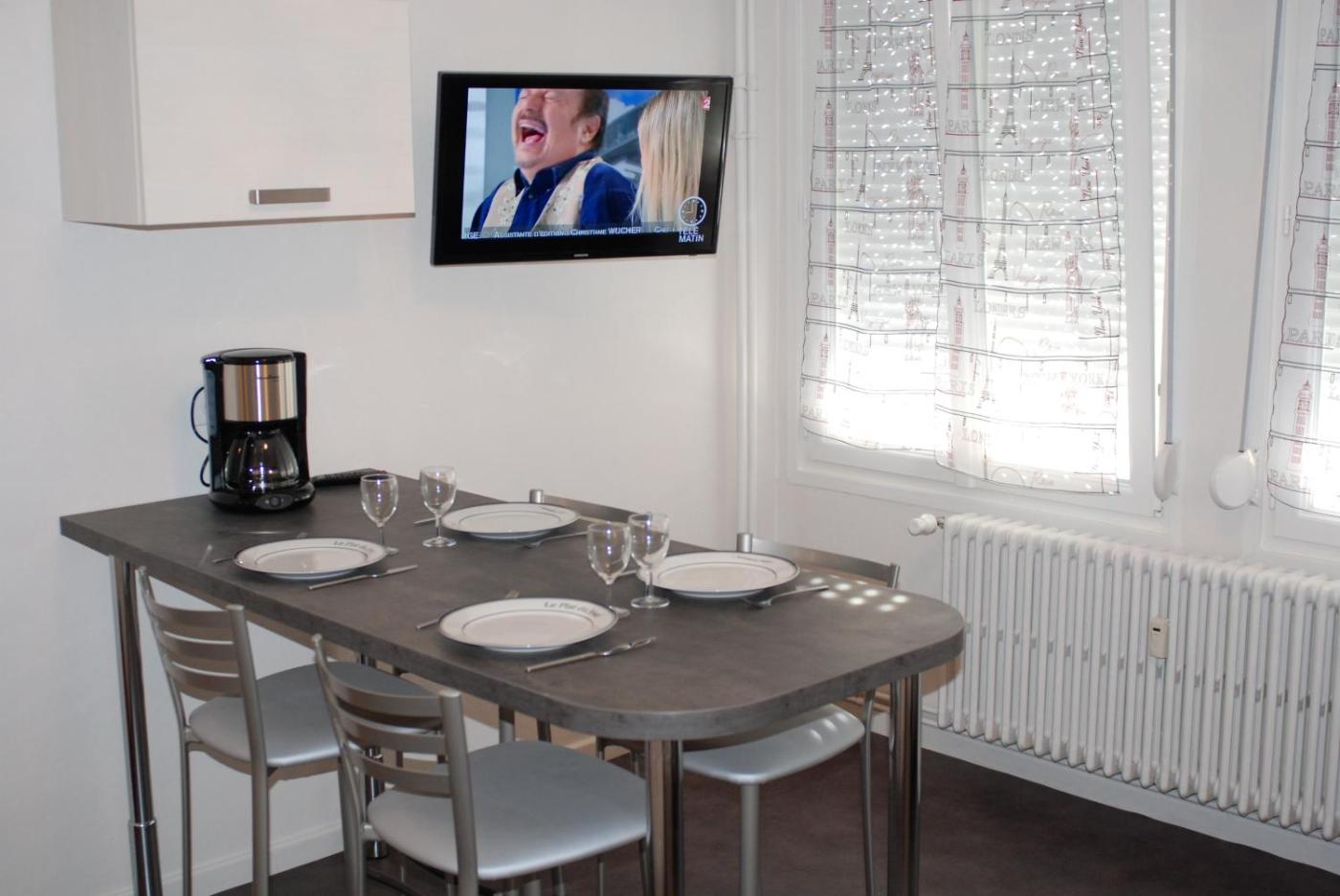 Appartement 1 Chambre. This apartment comprises 1 living room, 1 separate bedroom and 1 bathroom with a shower and a hairdryer. Meals can be prepared in the kitchen, which comes with a stovetop, a refrigerator, kitchenware and an oven. The apartment provides a TV, a coffee machine, a dining area, a dressing room as well as city views. The unit offers 2 beds.