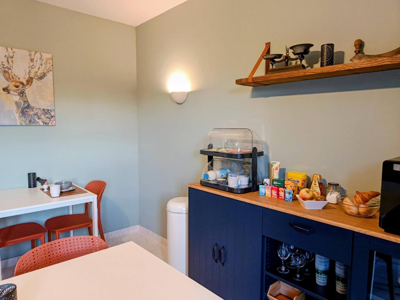 Un réfrigérateur, un four et un micro-ondes sont également à disposition, de même qu’une machine à café et une bouilloire.