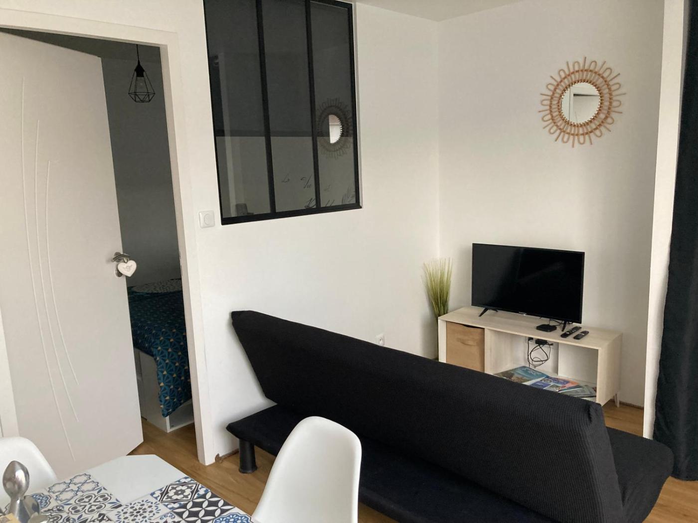Maison 1 Chambre. Featuring a private entrance, this holiday home is comprised of 1 living room, 1 separate bedroom and 1 bathroom with a shower. Guests will find a stovetop, a refrigerator, kitchenware and a microwave in the well-fitted kitchen. The holiday home also has a barbecue. This holiday home features a washing machine, soundproof walls, a flat-screen TV and a terrace. The unit offers 2 beds.